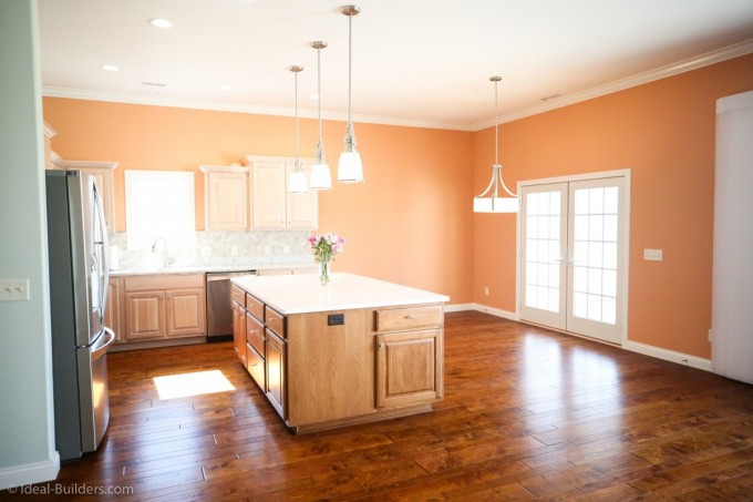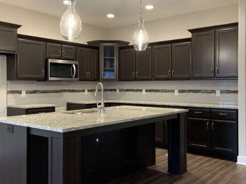 Gorgeous ranch home with beautiful kitchen which includes a spacious island and plenty of cabinet space.