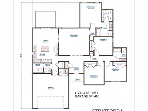 The Stratford II features a Large Eat-in Kitchen & Spacious Great Room with 4 Bedrooms & 2 1/2 Bathrooms.