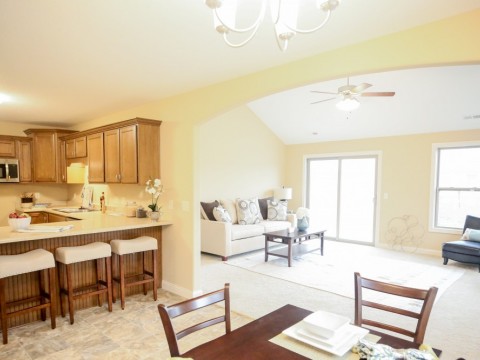The Traditions III is a spacious villa with 2 bedrooms and 2 full baths. The custom Kitchen has lots and lots of storage space for all of your appliances. Call one of our agents today so they can show you the beautiful Traditions III.