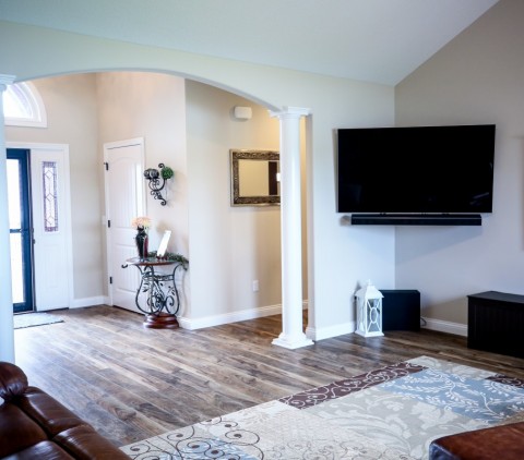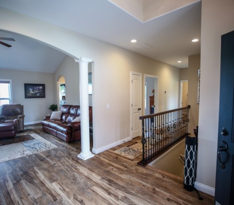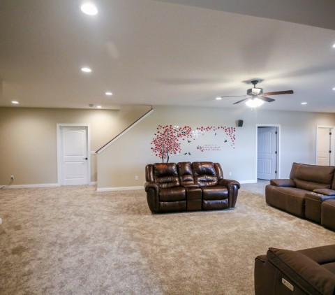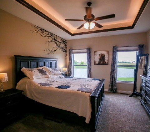We can't think of a better example of a client utilizing one of our floor plans as a starting point for their custom home. The Genths utilized our Stratford 2 floor plan to begin designing their custom home, in part for its functionality and space configurations. They were attracted to the separation of the children's bedrooms from the master and also the addition of a fourth bedroom that differentiates it from the Stratford 1. Noah was a huge fan of the kitchen space and Danielle agreed that the U-shape kitchen was a nice roomy feature to have. The Stratford 2 really morphed into a custom build soon after finishes were picked out and a fully finished basement was added to the home along with a screened-in porch that overlooks the beautiful pond and serene wildlife soundscape. Thank you screened-in porch for facilitating maximum enjoyment of these nature views and sounds without the first-hand encounters.